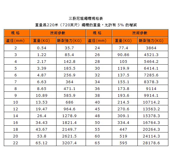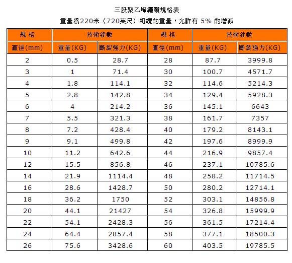 Rope Specification: